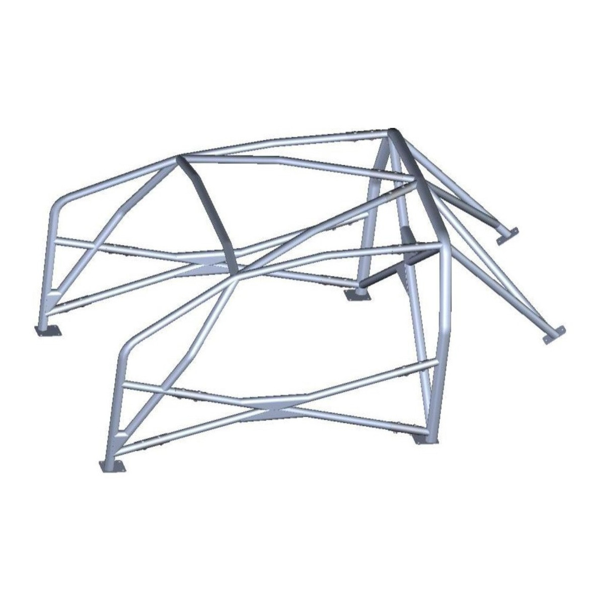 Gabbia con doppio rinforzo su porte + rinforzo a croce con gusset su arco principale + traversa rinforzo a V su tetto e controventature posteriori + traversa rinforzo montante parabrezza.