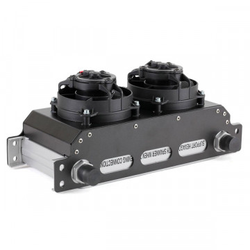 Kit raffreddamento forzato con ventola aspirante per radiatore olio 16 file lungo 235mm (massa radiante) Specifiche tecniche: - Flusso d’aria combinato: 500 m3 / ora (296 cfm) - Peso incluso radiatore olio: 2,49 kg (5,48 libbre) - Altezza pila radiatore olio: 16 file o 19 file - Voltaggio: 12v - Corrente continua: 6.0 - 6.4a - Consumo elettrico: 72 - 76,8 W. - Protezione: certificato IP68 - Costruzione della custodia: alluminio tagliato al laser con resistente finitura a polvere testurizzata Questo articolo è disponibile con una ventola aspirante o soffiante all’interno del kit. RADIATORE FORNITO A PARTE