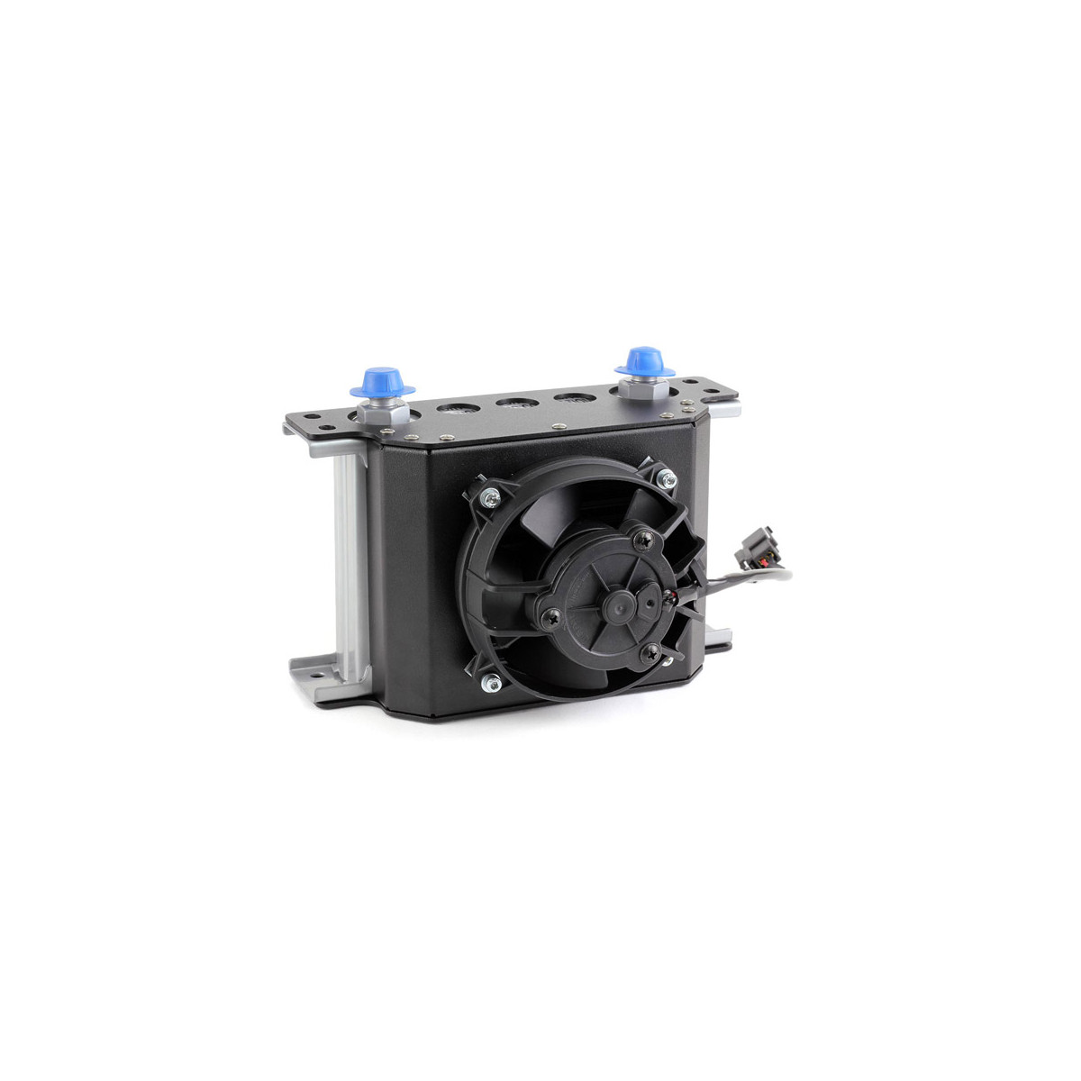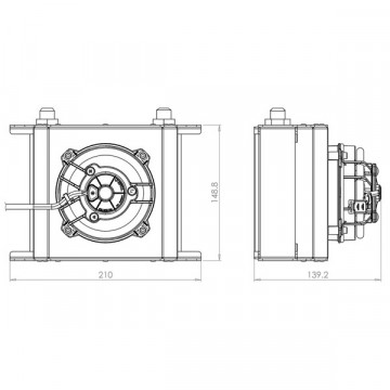 Kit raffreddamento forzato con ventola soffiante per radiatore olio 19 file lungo 115mm (massa radiante) Specifiche tecniche: - Flusso d’aria: 250 m3 / ora (148 cfm) - Peso incluso radiatore olio: 1,38 kg (3,04 libbre) - Altezza pila radiatore olio: 16 file o 19 file - Voltaggio: 12v - Corrente continua: 3.0 - 3.2a - Consumo elettrico: 36 - 38,4 W. - Protezione: certificato IP68 - Costruzione della custodia: alluminio tagliato al laser con resistente finitura a polvere testurizzata. Questo articolo è disponibile con una ventola aspirante o soffiante all’interno del kit. RADIATORE FORNITO A PARTE