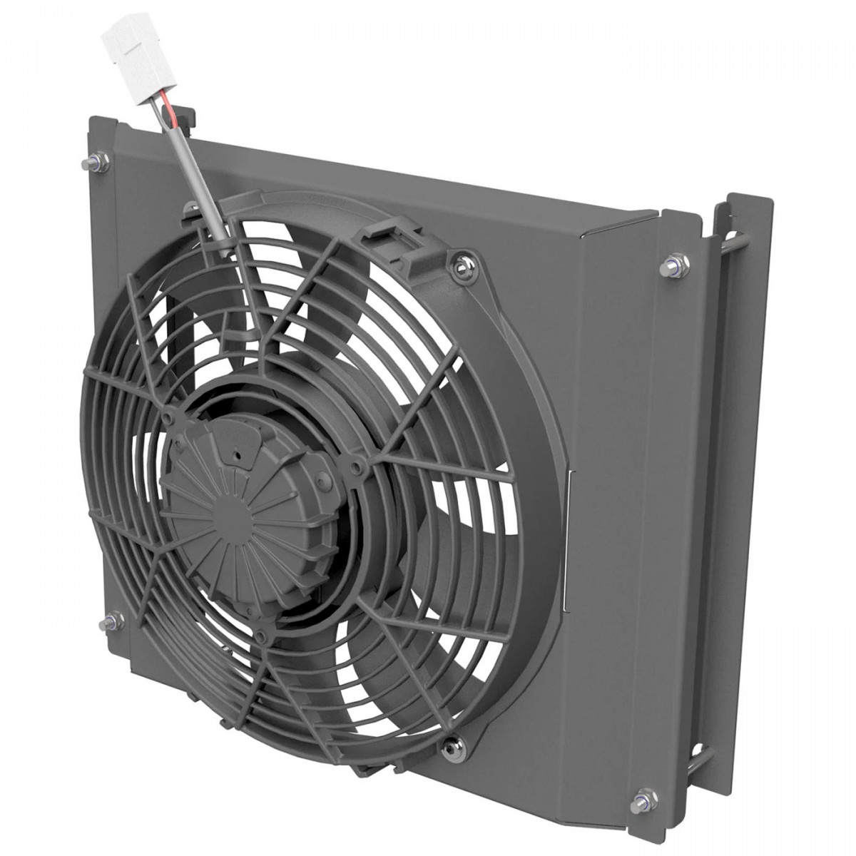 Convogliatore in alluminio progettato per radiatori olio da 19 file: Caratteristiche: - Ventola di aspirazione 12V di qualità OEM per un flusso d'aria affidabile - Aspira l'aria su tutta l'area del radiatore per garantire le massime prestazioni di raffreddamento - nessuna modifica permanente al refrigeratore dell'olio richiesto - IP68 certificato e progettato per il funzionamento continuo - Versione con 13 file in ABS resistente al calore (fino a 105°C) - Compatibile con le principali marche di refrigeratori di olio - i kit possono essere montati verticalmente o capovolti - tutte le staffe e le parti di montaggio richieste sono incluse nel kit (i refrigeratori a olio sono venduti separatame