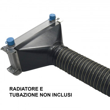 Presa d'aria realizzata su misura per una facile installazione sui radiatori d'olio. Staffe in alluminio lavorate con precisione incluse. La presa presenta un imbocco singolo con due misure di diametro, da 63mm o da 76mm.