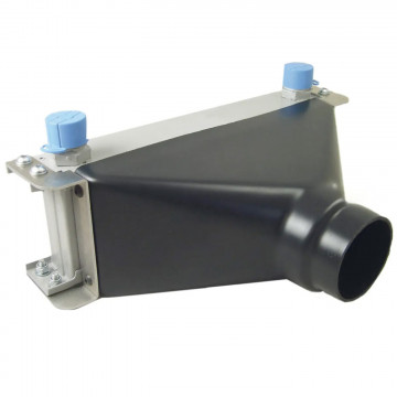 Presa d'aria realizzata su misura per una facile installazione sui radiatori d'olio. Staffe in alluminio lavorate con precisione incluse. La presa presenta un imbocco singolo con due misure di diametro, da 76mm o da 89mm.