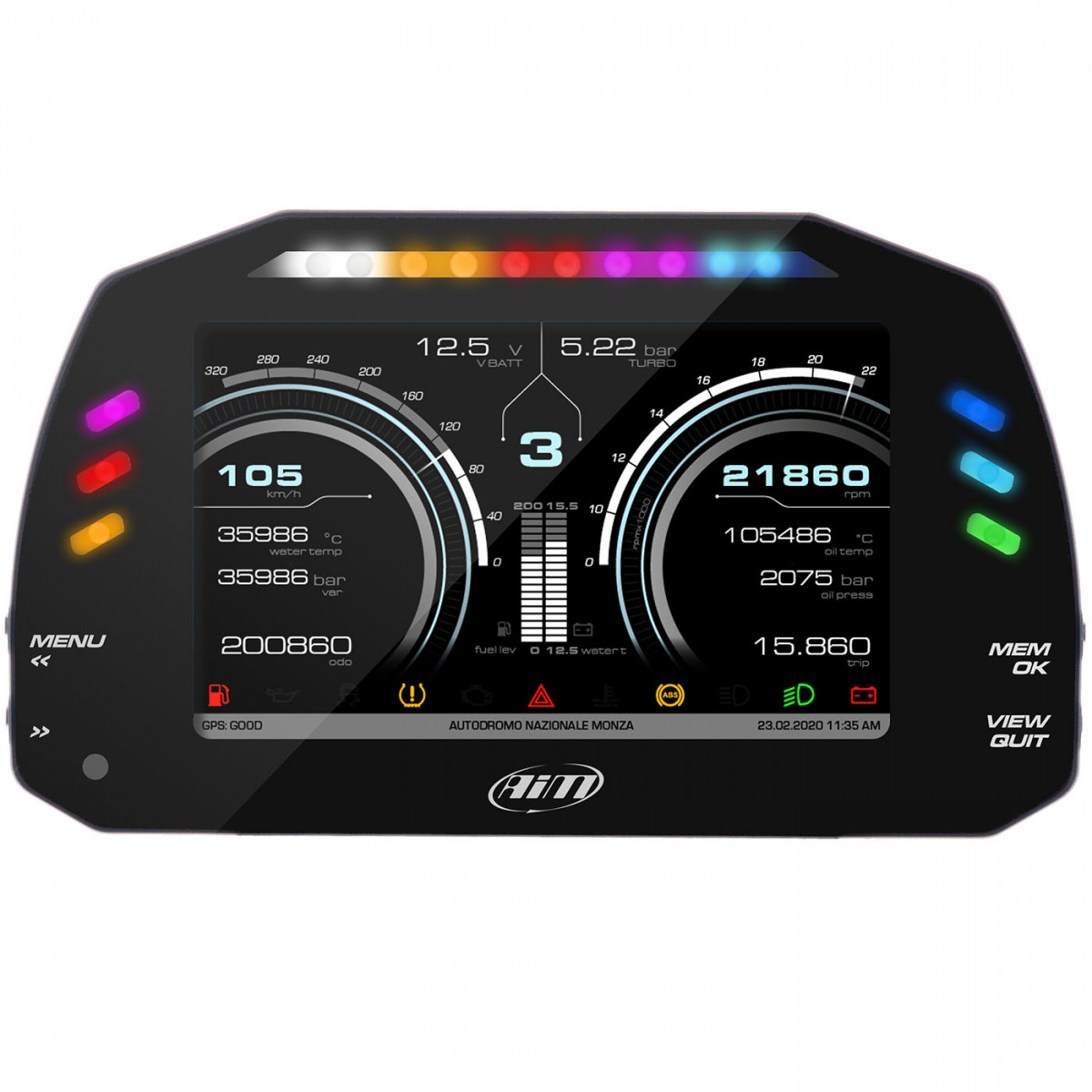 Display TFT 5”, risoluzione 800x480 pixel, contrasto 600:1, sensore luce ambientale, 6 allarmi LED RGB e 10 shift light LED RGB completamente configurabili, 2 connessioni CAN, connessione CAN o K-Line a oltre 1.000 centraline di serie e aftermarket, 4 input analogici configurabili (max 500 Hz ognuno), 1 input video Ext PAL-NTSC, secondo CAN, chassis in alluminio anodizzato, pulsanti metallici, 1 connettore AMP + 1 connettore Binder, IP67.