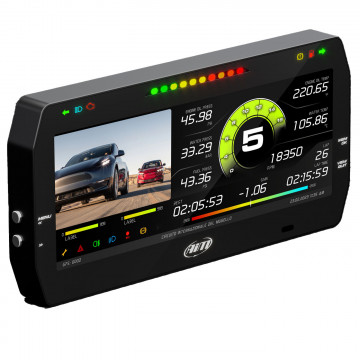 Display TFT 10", risoluzione 1280X480 pixel, contrasto 1100:1, 6 allarmi LED RGB configurabili, 10 shift light LED RGB configurabili, 2 connettori Motorsport + 1 connettore Binder, 3 connessioni CAN, connessione a più di 2.000 protocolli ECU del mercato, 8 canali analogici/digitali configurabili, 4 canali velocità digitali, 1 canale RPM, 2 uscite digitali, piattaforma inerziale, canali matematici completamente configurabili, connessione Wi-Fi 802.11, IP67.