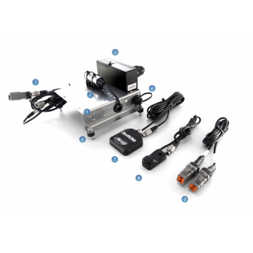 - Acquisitore dati EVO5 - Modulo GPS-09 versione Roof - Cavo USB - Ricevitore ottico HM B712 cavo cm 300 - Staffa di supporto e viteria - Sensore pressione assoluta per turbo - Cablaggio personalizzato Power/canECU FIA GT