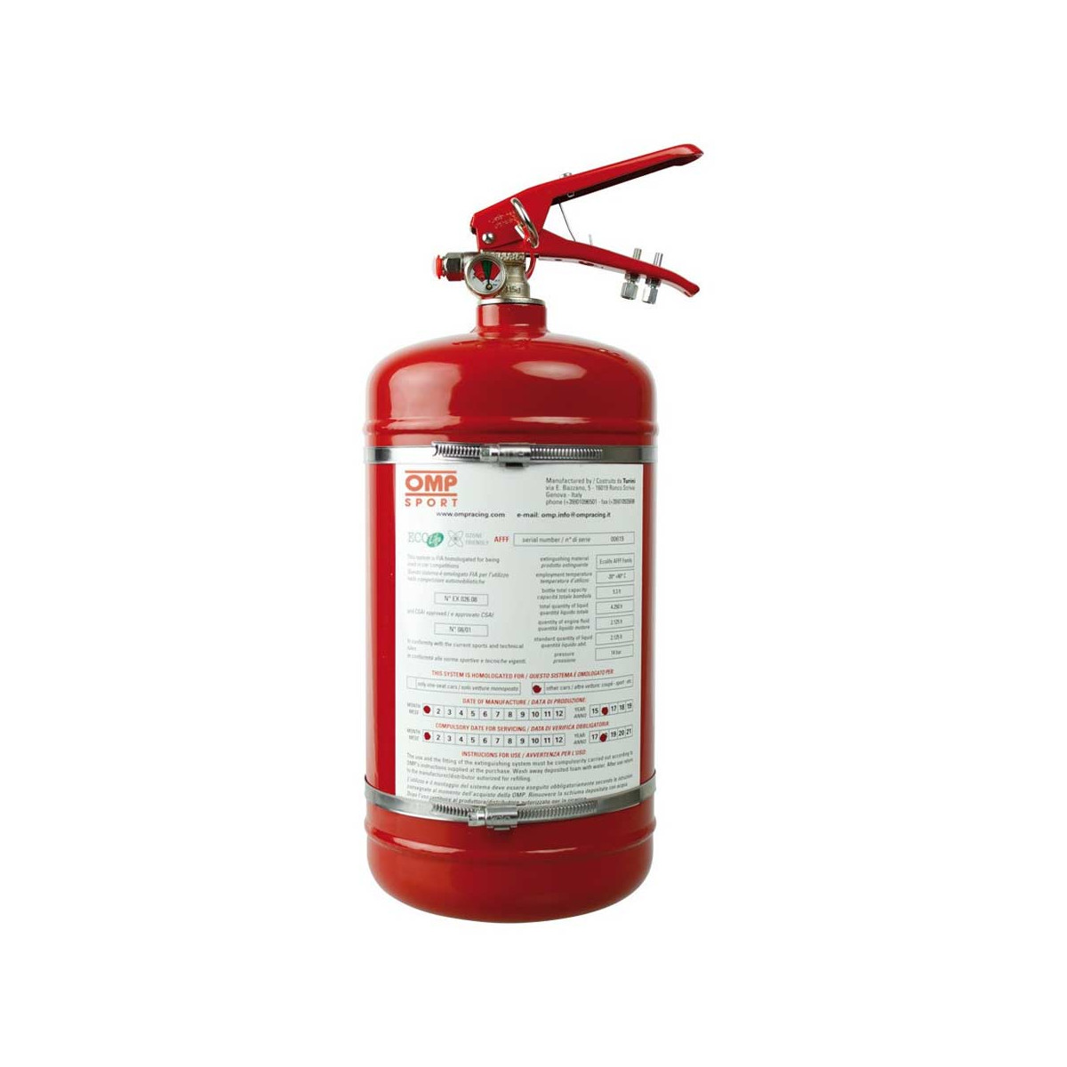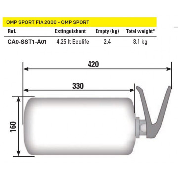 Nuovo impianto di estizione ad azionamento meccanico( vano motore e pozzetto) in acciaio. Impianto per vetture berlina completo di tubi, ugelli e cuffia in acciaio. Ecolife da 4,25 lt.C Completo di staffe in acciaio inox e fascette di fissaggio. Diametro: 160mm, Lunghezza: 330 mm. Bombola colore: Rosso Peso: 8,1 kg