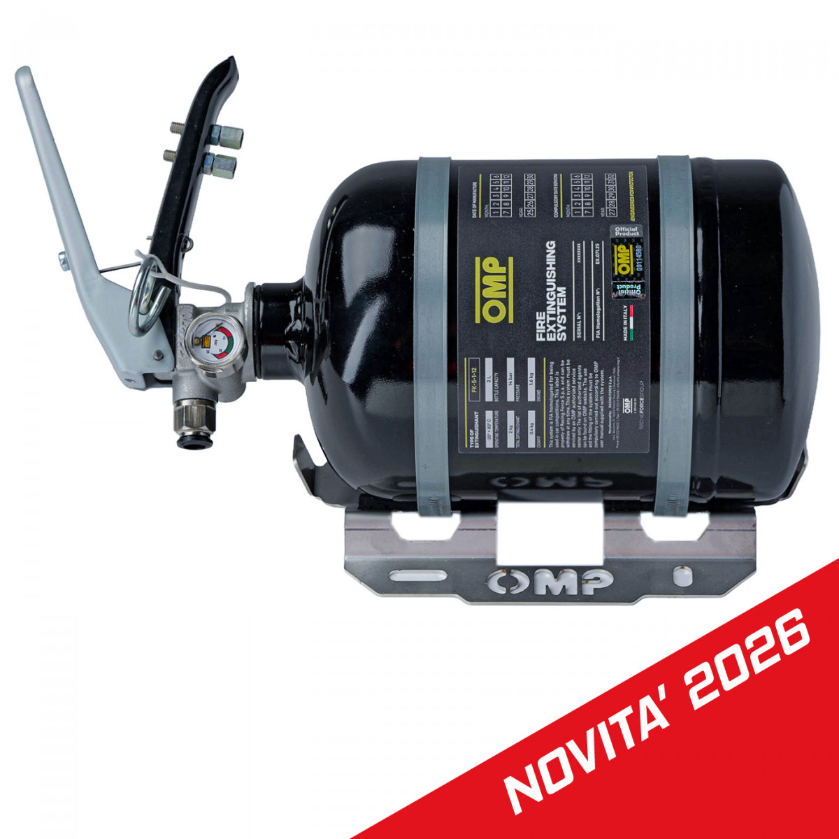 Impianto estinzione ad attivazione manuale, progettato per berline che richiedono un sistema antincendio resistente e ad alte prestazioni. Materiale estinguente: 2KG FK-5-1-12 Bombola in acciaio Ø 130mm Omologazione come da lista 16 FIA