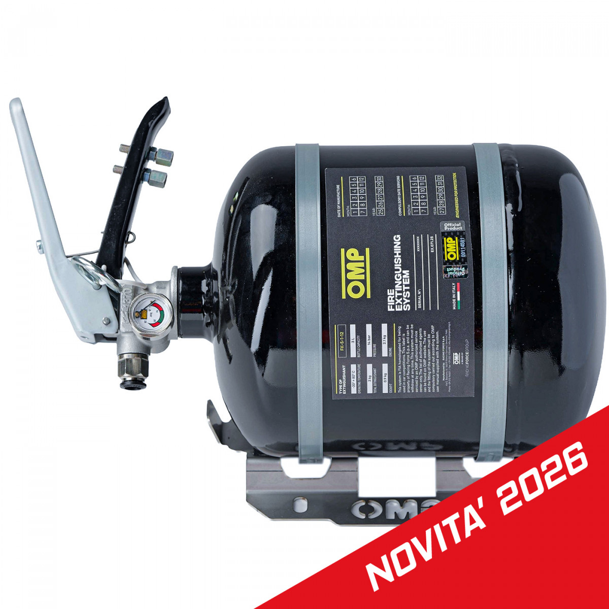 Impianto estinzione ad attivazione manuale, progettato per berline che richiedono un sistema antincendio resistente e ad alte prestazioni. Materiale estinguente: 2KG FK-5-1-12 Bombola in acciaio Ø 160mm Omologazione come da lista 16 FIA
