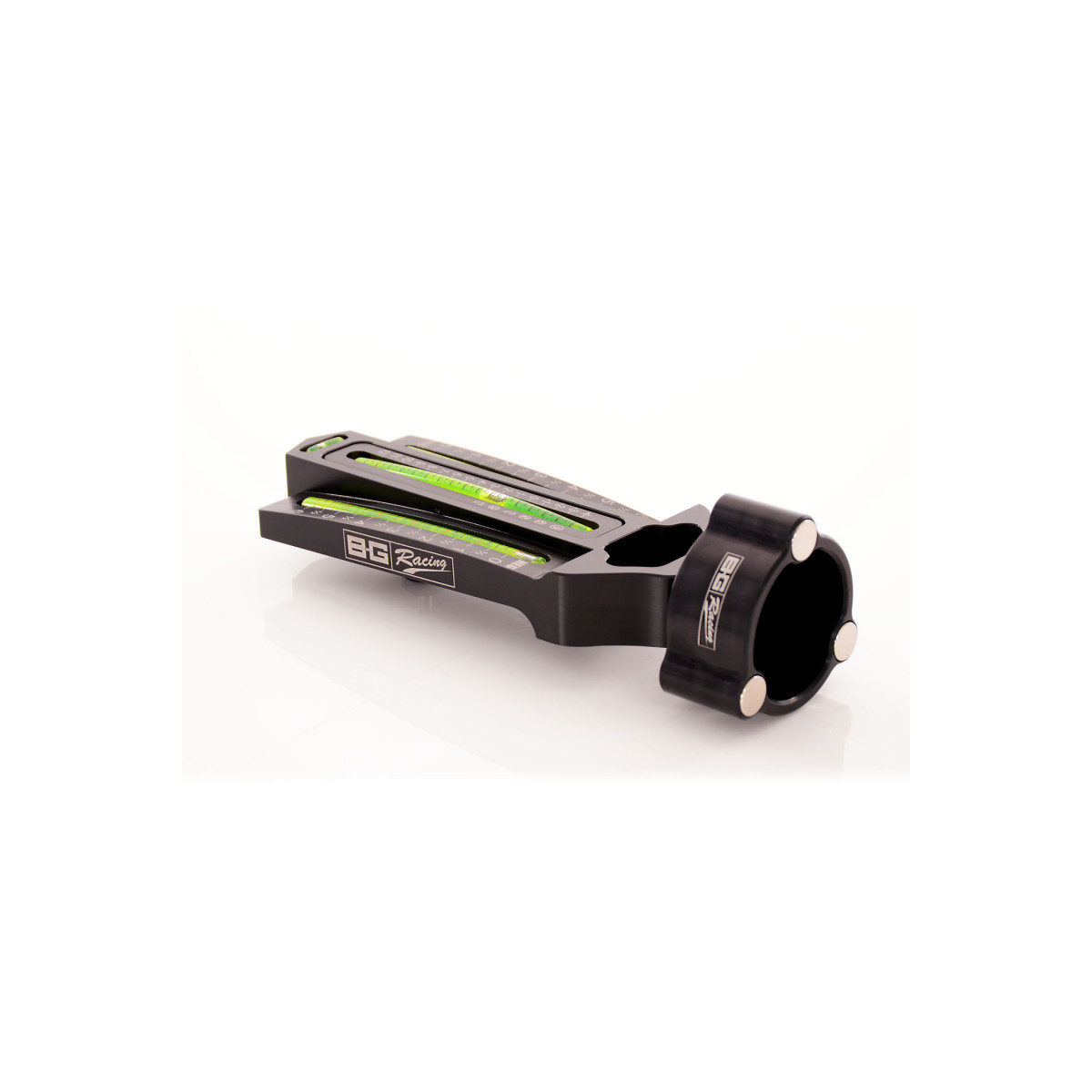 Involucro in lega lavorata a CNC, il calibro a bolla Camber/ Castor misura accuratamente fino a +/- 6 gradi di campanatura e da -4 a +12 gradi di incidenza, chiaramente visualizzabili su fiale positive e negative separate.