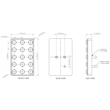 Le luci della pioggia sono conformi a IP65 e possono anche essere cablate come luci multiuso per pioggia/freno.SPECIFICATION- Dimensioni: Lunghezza = 91.0mm, Larghezza = 56.5mm, Spessore = 14.0mm- Peso: 120gr- Tensione di lavoro (Volts): 11.3v - 15.6v- Assorbimento: 700mA @ 12.5V- Temperatura di esercizio: -10 / +105 degrees C- Materiale: Pezzo singolo di resina stampata (IP65)- Connessione: 190mm Mil-Spec Flying lead (Type 55 22awg wire)