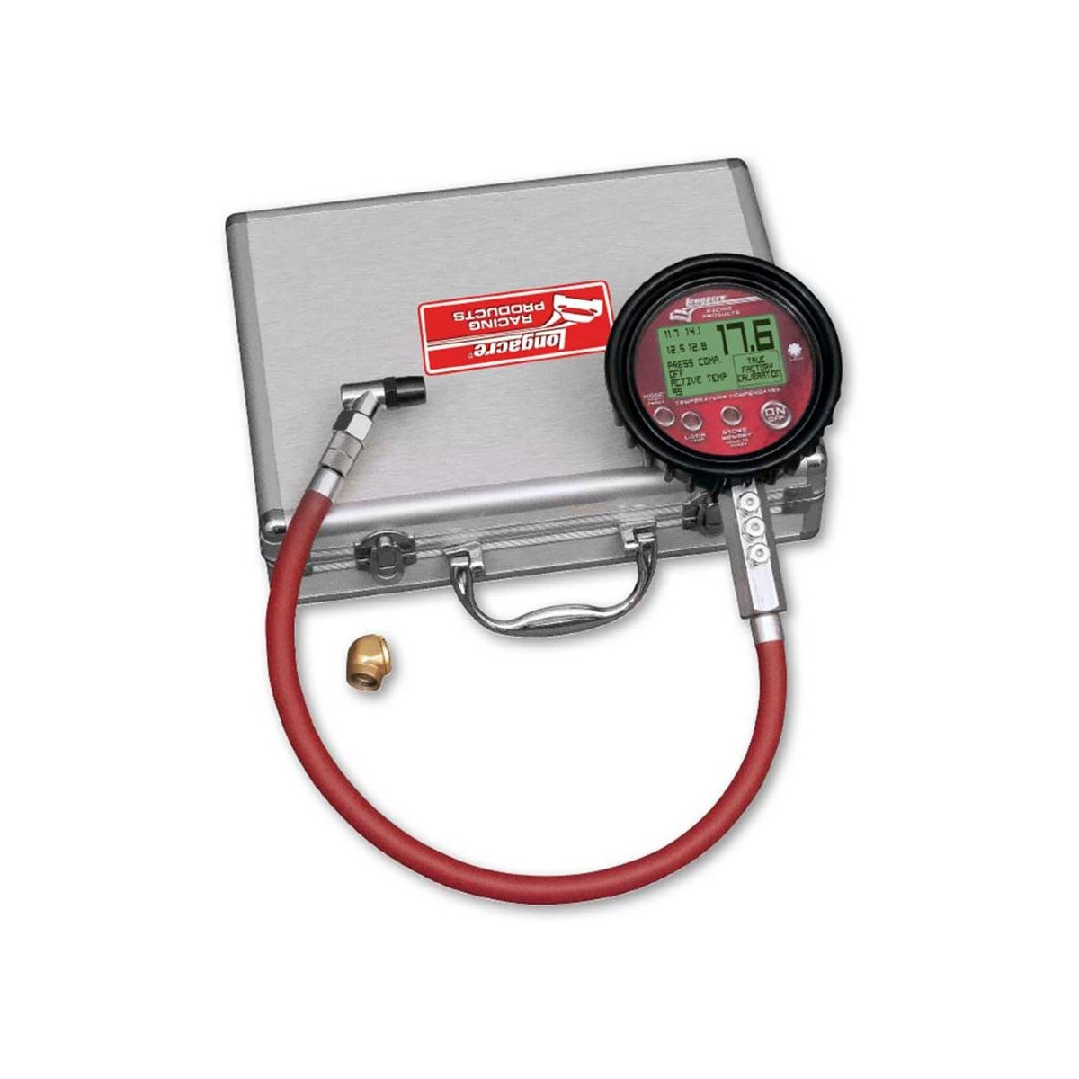 Manometro digitale Longacre Ultimate. E' in grado di raccogliere e visualizzare 12 misurazioni (3 per pneumatico). Fondoscala a 100psi/7bar (commutabile).