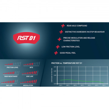 La mescola PAGID Racing RST D1 è stata sviluppata appositamente per applicazioni sull'asse posteriore. Le mescole sono compatibili, offrendo vantaggi in termini di stabilità del veicolo in fase di sterzata e riducendo l'usura delle pastiglie sull'asse anteriore.