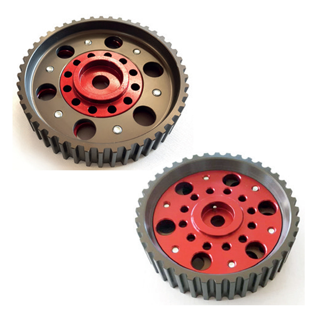 Queste pulegge sono realizzate in Ergal, un materiale estremamente leggero e resistente, e permettono di regolare con precisione la fasatura del motore al fine di ottenere la massima coppia.