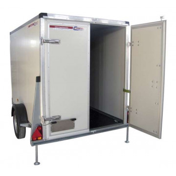 • piano di carico in multistrato marino antiscivolo • carrozzeria in alluminio coibentato • freno a repulsione meccanica con sblocco autoreverse per retromarcia • sospensione a barra di torsione su gomma a ruote indipendenti • telaio profilato di lamiera grosso spessore zincata a caldo • ruote di grande diametro di tipo automobilistico • impianto luci a nuova normativa comprensivo di retromarcia • ruotino di stazionamento zincato a caldo con cuscinetto per minimo sforzo in alzata • piedini posteriori di stazionamento