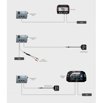 SmartyCam 3 Corsa CAN ECU 2mt con lente da 67° Il kit include: - SmartyCam 3 Corsa (67° lens) - Carica batteria con adattatore AC - CAN ECU cable 2 m - USB 2.0 Type A cable