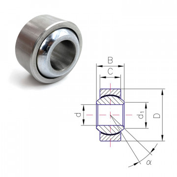 Snodo sfericoDimensioni:(B) 25,0mm(C) 18,0mm (D) 46,0mm (d) 20,0mm(d1) ca 24,3mm angolo inclinazione 15°Valore di carico 132kN