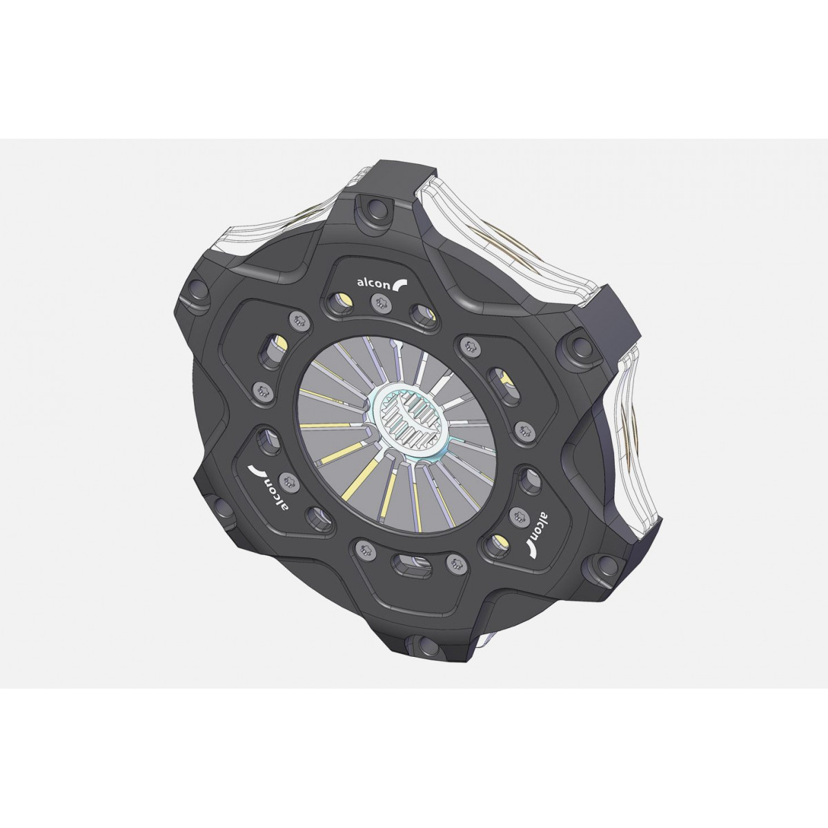 Frizione bidisco Alcon 184mm (disco escluso) - Capacità di coppia 554 Nm (407 lb/ft) - Montaggio con volano scalinato - Coperchio alluminio