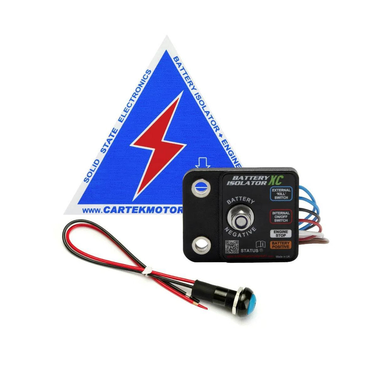 L?interruttore interno può accendere e spegnere lo staccabatteria, mentre l?interruttore esterno può solo spegnere lo staccabatteria. Questo è conforme alle norme di sicurezza Motorsport UK. Inoltre, tutti gli staccabatteria CARTEK si arrestano automaticamente in caso di guasto, come cortocircuito, sovracorrente, surriscaldamento o cavi danneggiati. In tal caso, il LED sull?unità e sull?interruttore interno CARTEK mostreranno un pattern lampeggiante che indica la causa del guasto.