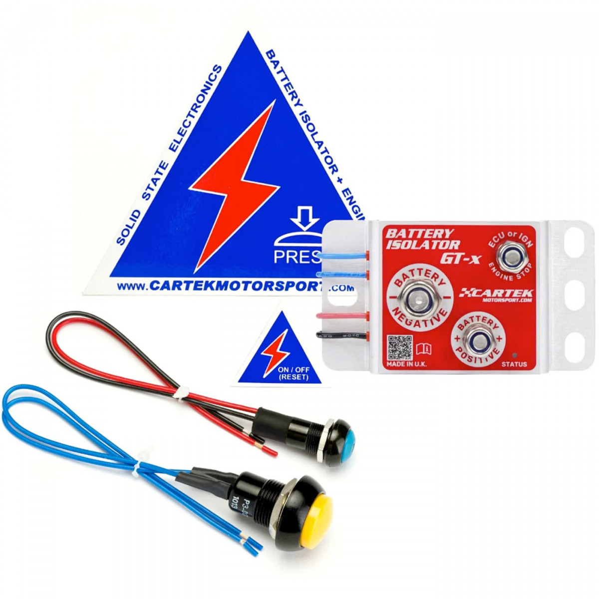 Il Cartek Battery Isolator GT-x è uno staccabatteria elettronico di ultima generazione progettato per applicazioni motorsport. Rappresenta una soluzione compatta, affidabile e moderna rispetto ai tradizionali staccabatteria meccanici, eliminando i problemi legati a contatti, usura e vibrazioni. Grazie alla tecnologia Solid State (senza parti mobili), il sistema garantisce massima sicurezza e prestazioni anche nelle condizioni più estreme, interrompendo simultaneamente batteria e motore in conformità ai requisiti FIA. Incluso nel kit: - Unità Battery Isolator GT - Pulsante interno ON/OFF - Pulsante esterno di emergenza (Colore: GIALLO) - Adesivi di sicurezza