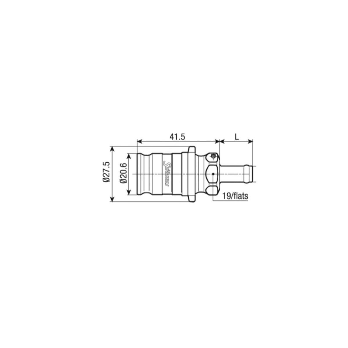 Valvola Staubli femmina con portatubo Ø 8 mm - Utilizzo: Benzina, azoto, oli e grassi minerali - Nominale: 05 - Sezione trasversale: 19,6 mm2 - Misura L: 16,5 mm - Peso maschio + femmina: 41 gr - Pressione lavoro max: 40 bar - Funzione Break-Away: Si - Chiusura: Doppia -Tempertura di funzionamento consentita -10,00°C a 200,00°C