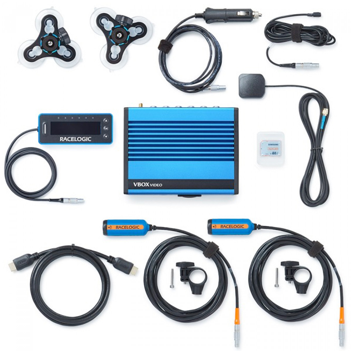 Contenuto del kit: - Data logger VBOX Video HD2 - 2 telecamere HD - OLED Display - Microfono - Supporto camera - Alimentazione veicolo - Antenna GPS - Scheda SD 32GB